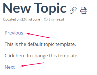 After doing so, you will get this at the beginning and end of all topics in a project except the first and the last topics because they don’t have the previous and next topics, respectively: