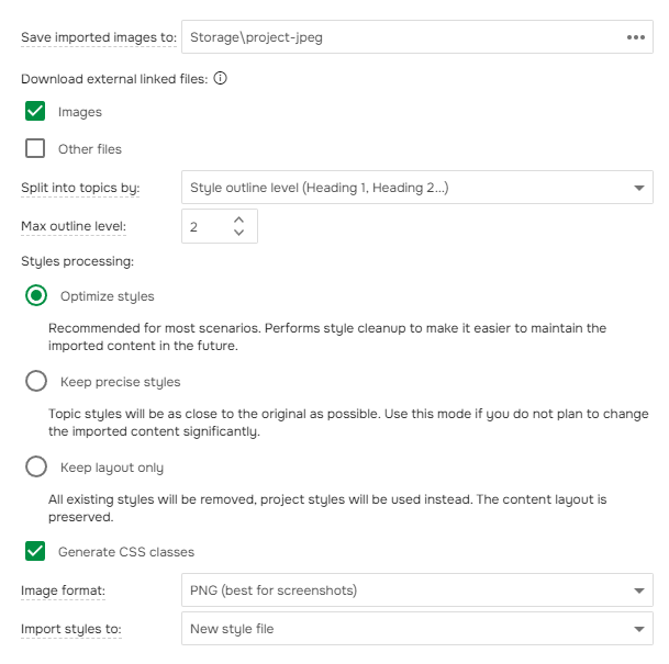 Allow you to configure how ClickHelp should handle the styles in your MS Word document after importing it. In the dialog itself, you can read some basic information about those three options. To get more in-depth information, check the Handling Content Styles help topic.