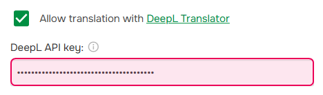 Go to the Machine Translation section of your ClickHelp portal settings and check the Allow translation with DeepL Translator checkbox.